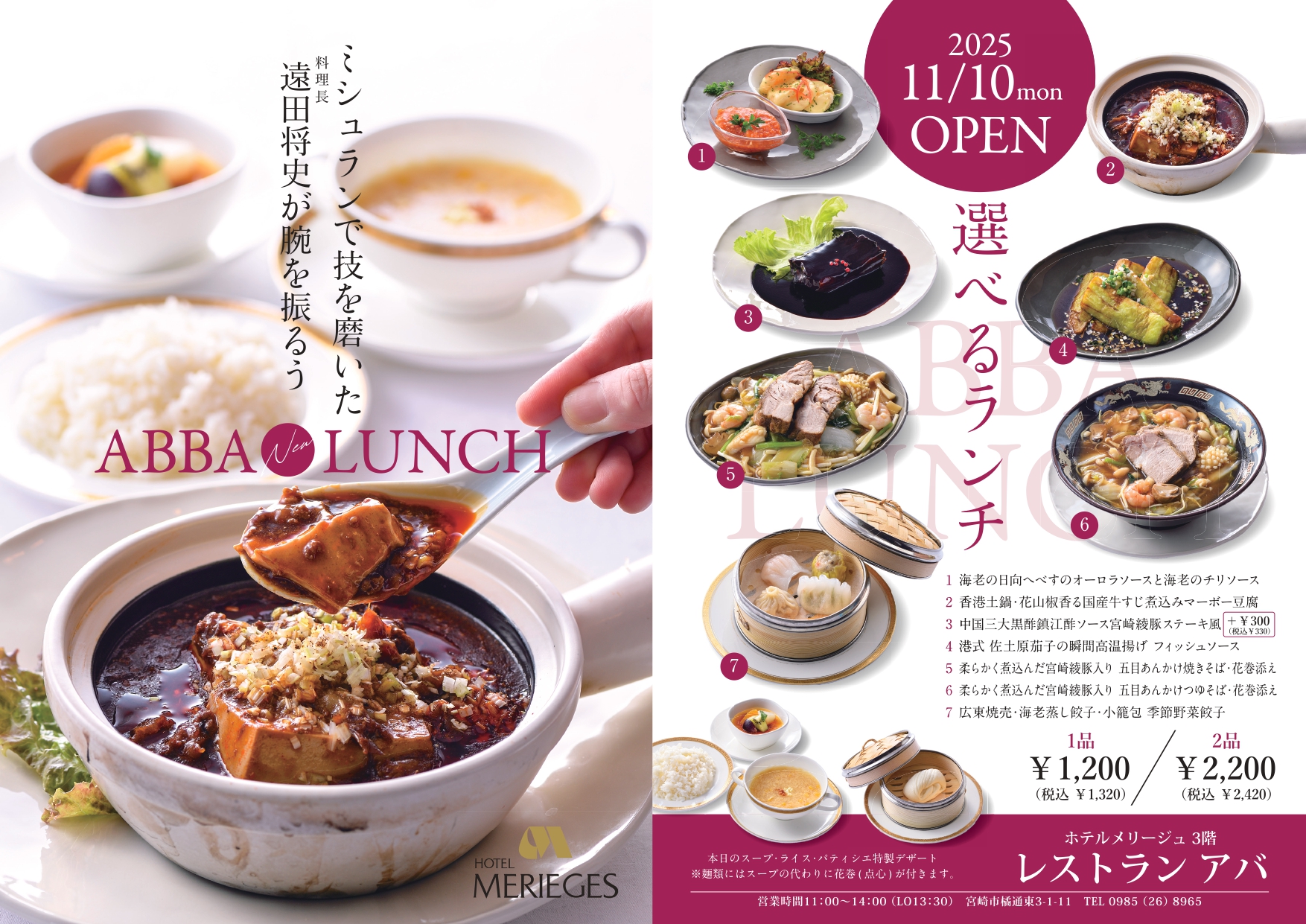 2025年11月10日(月)よりレストラン「アバ」のランチが新しくスタートします!